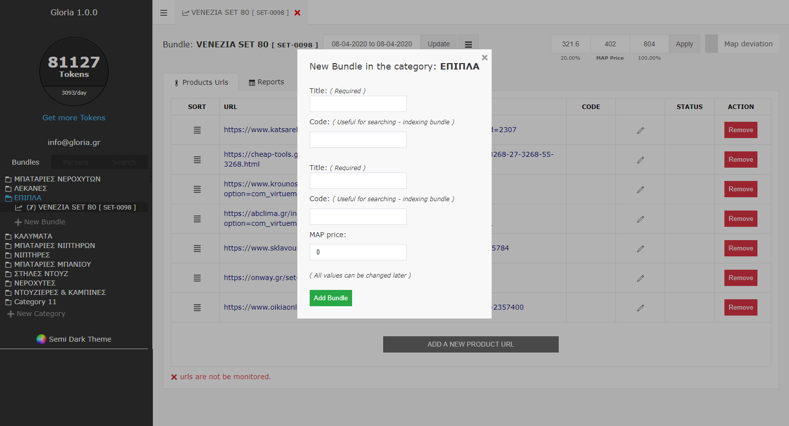 - Στο παράθυρο αυτό πληκτρολογούμε τον τίτλο του προϊόντος, τον κωδικό του και την τιμή καταλόγου και πατάμε "Add Bundle"