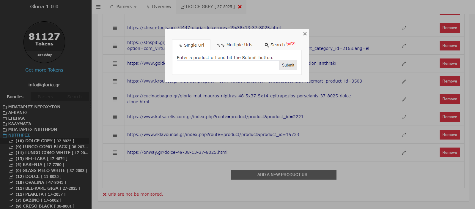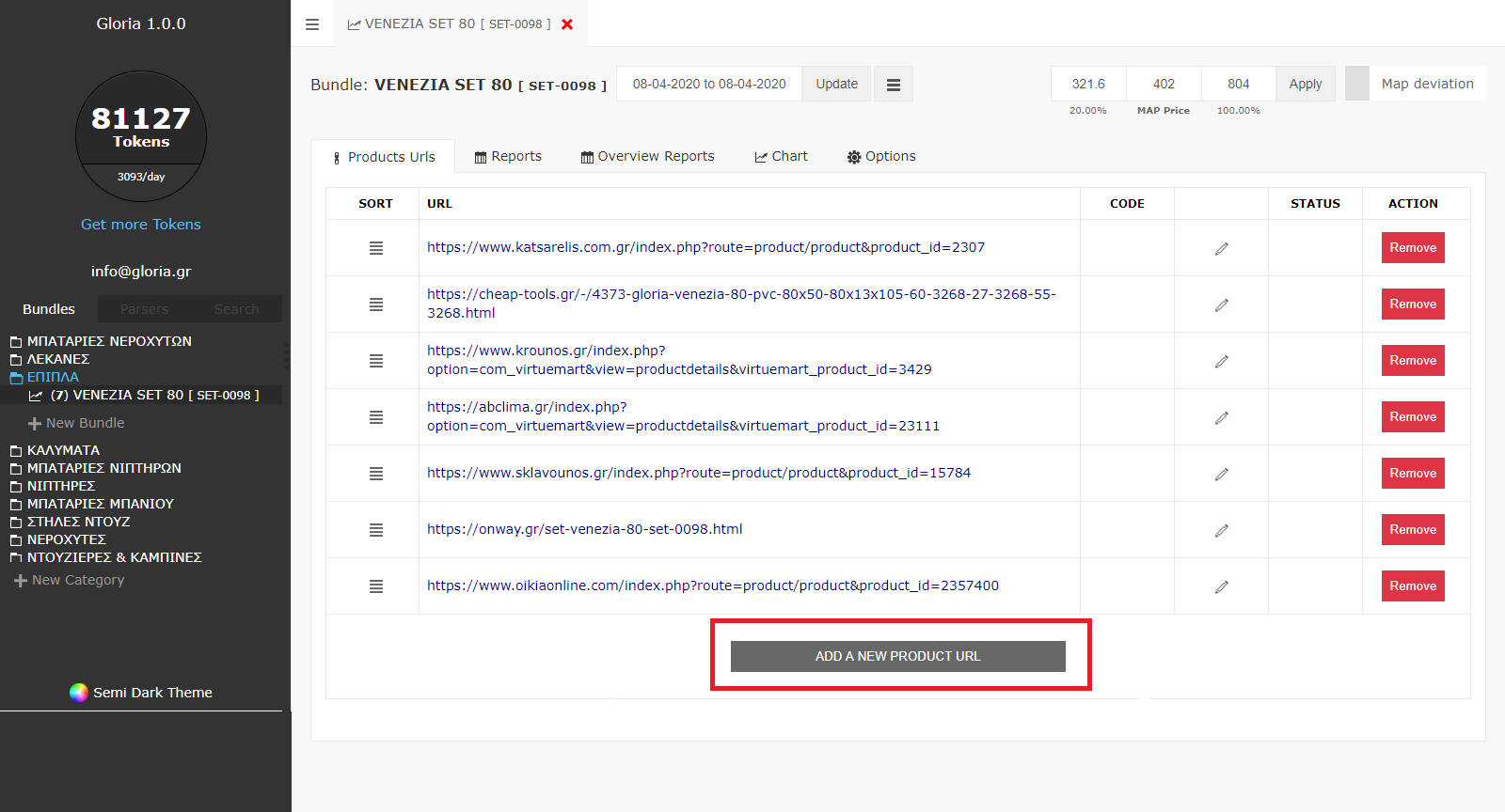 - Αρχικά πατάμε την επιλογή "Add new product url"