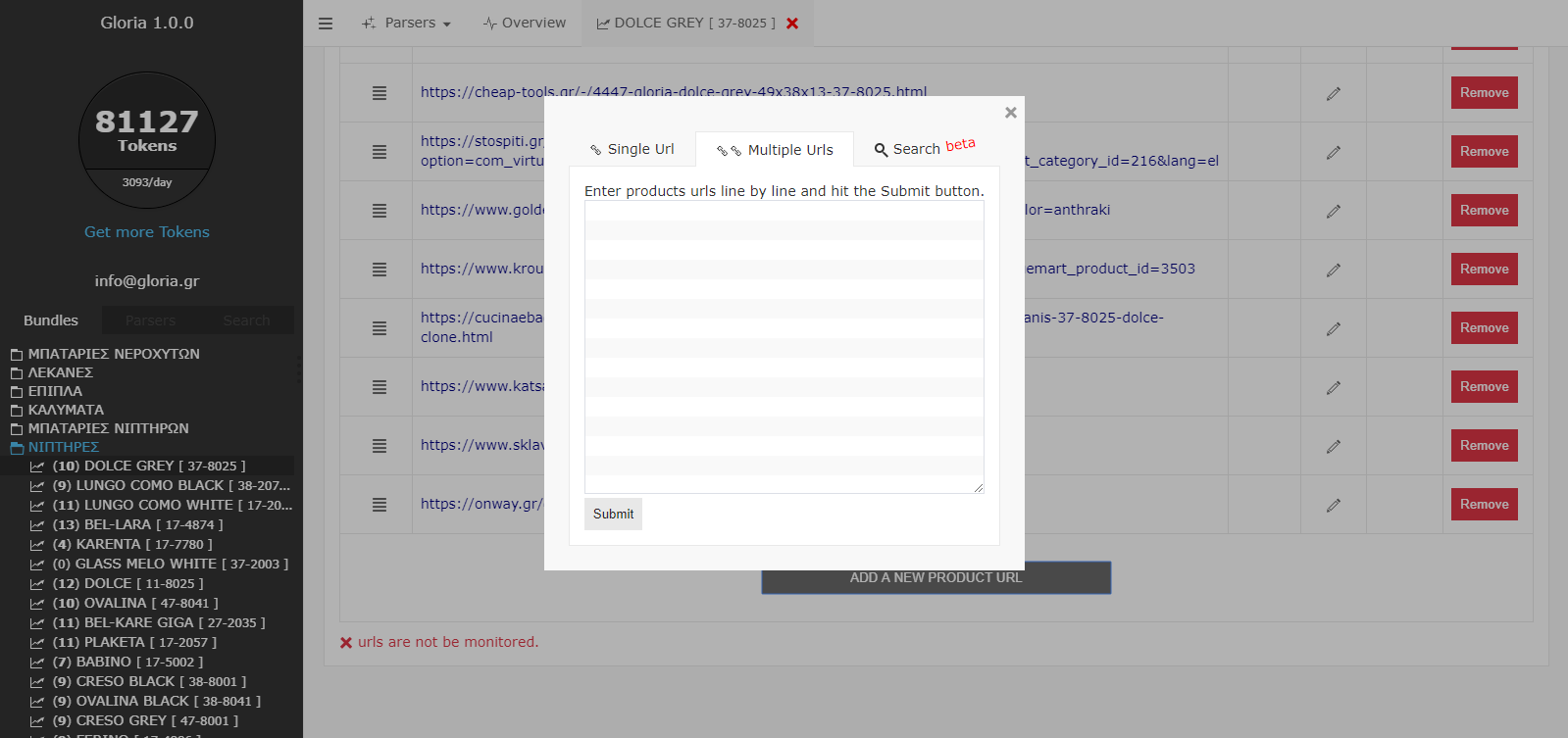 - Μαζικά - Εισάγουμε πολλαπλά urls χωρίζοντάς τα ανά γραμμή και πατάμε το κουμπί "Submit"(βλ.εικόνα 3)